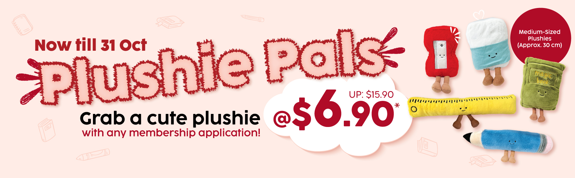 *Promotion is valid from now till 31 October 2025.Discount e-coupon will be issued via POPULAR SG App wallet for application on app. Maximum purchase of 2 plushies per membership application. Other e-coupon terms and condition apply. While stocks last.