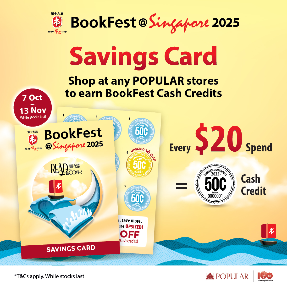 ✨ For every $20 nett spend in a single receipt, earn 50¢ cash credit to redeem at BookFest 2025* (14 – 23 Nov).